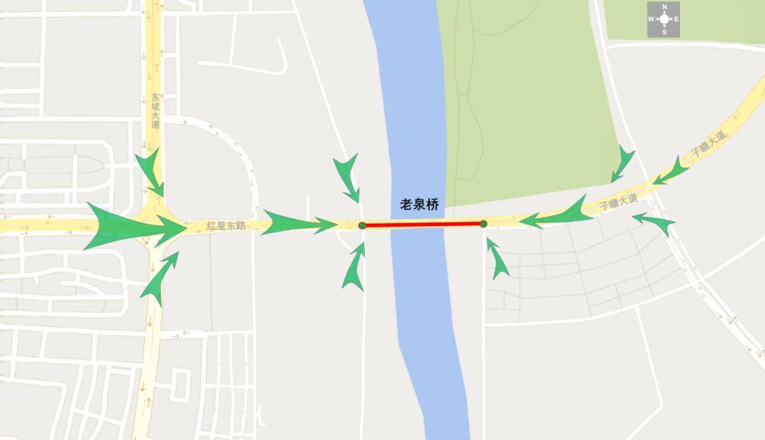 晚高峰时段,经红星东取子瞻大道汇入老泉桥的车流量显著添加,且汇集速度较快。大量车辆同时涌向老泉桥,导致桥两头口敏捷呈现车辆列队。加之周边口通行能力无限,车辆通过迟缓,拥堵从焦点节点向外延伸,最终正在相连网中构成一片运转迟缓的“红色”区域。