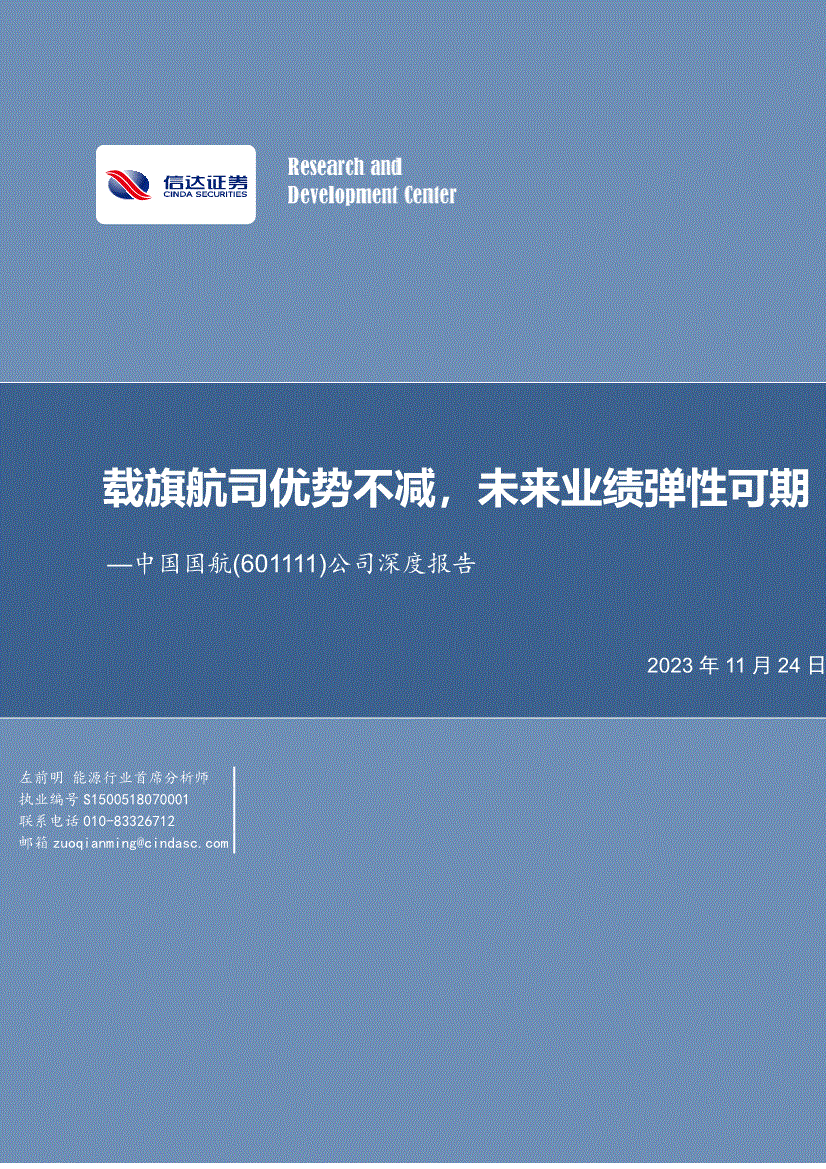 【慧博投研资讯】公司一曲专注于航空运输从业,先后控股、参股浩繁处所航司,持续扩大运营规模。(慧博投研资讯)2023年上半年,公司实现停业收入596亿元,同比高增148。9%,实现同比增速转正;利润端,23H1公司毛利润同比大幅提拔102。8%,毛利率及净利率双升,同比+60。6pct、+85。9pct;归母净利大幅减亏,实现-34。51亿元,同比+82。2%;23H1末人平易近币汇率较22岁暮贬值3。75%,特别二季度人平易近币兑美元汇率两头价贬值约5。15%,若扣除汇兑丧失影响,23H1公司实现扣汇归母净利-23。4亿元,23Q2扣汇归母净利约10。1亿元,同比19Q2增加141。5%,行业领先合作劣势,市占率连结前列。1)枢纽收集劣势:依托枢纽扶植,控制优良时辰资本,提拔全体收益程度。公司目前已构成、上海、成都、深圳的四角菱形航路收集布局,航路收集笼盖国内生齿最稠密、经济最发财区域,贴合公司中高端公商务搭客群体市场定位。国内航路年冬春航路航班打算中,公司一线%,一线&新一线城市互飞航路占比为国内航司最高,达到25。3%;航班量排名前20位的城市间航路中,公司市占率排名第一/第二位的别离有6条/7条,根基均为公商务搭客资本丰硕的航路。国际及地域航路亿可用座公里,运力绝对值及占比都位居航司首位。同时,公司正在获取门槛较高的二类近程国际航路、欧美地域的航班市场份额占领绝对劣势,按照2023年冬春航路航班打算,公司正在欧洲地域的航班量占比达到45。9%,地域占比31。1%,均居于航司首位,国际航路)市场定位劣势:定位公商务支流搭客市场,收益质量高。公司卡位首都枢纽,定位中高端公商务支流搭客市场,地域高收入群体占比高,商务出行需求强,保障收益质量。2022年国航客公里收益为0。63元,收益程度为航司最高;同时,会员人数及常搭客收入的平稳增加无效保障公司将来收益。公司会员人数一曲连结平稳增加,截至2022岁暮,公司凤凰知音会员已跨越7511。26万人,常搭客贡献客运收入占比约51。9%。1)收购山航,进一步提拔市场份额。公司逆势整合取得山航集团及山航股份节制权,进一步巩固市场地位。截至23H1,公司资产总额提拔至3445亿元,现无机队规模扩大至902架,排名均升至航司首位。2)供需增速向下布景下,需求无望提拔。供给端,自2019年起,国内运输飞机数量增速呈现较着下降,至2022年飞机架数增速持续四年维持个位数增速,且增速呈现波动下降趋向;同时,全国航司机长数量自2020年起增速较着下降,2022年国内航司机长人数同比下降1。9%。需求端,搭客周转量及客座率均呈现上升趋向。2023年以来,全国平易近航搭客周转量当月值逐月上升,当月同比增速均连结正在40%以上;国际出逛需求持续提拔,2023年1月到10月,国际航路)票价端:供需错配下,票价市场化持续拉动业绩提拔。国内平易近航票价市场化逐渐推进。从实行市场调理价航路月,实行市场调理价的国内航路条,占昔时全数国内航路%。从具体航路年,次要航路元、3650元、2350元,累计涨幅别离为73。4%、75。5%、74。1%,均跨越70%,票价市场化持续深化;叠加平易近航需求回暖、搭客周转量提拔、市场调理带动的航路提价效应,航司将来盈利能力无望持续提拔、业绩增加可期。4)油价&汇率:油价方面,公司航空油料成本遭到用油量和航油价钱分析影响。公司航油成本正在停业成本中占比大致连结正在30%摆布,2023年上半年,占比约32。7%;正在其他变量连结不变环境下,若平均航油价钱上升或下降5%,公司航油成本将上升或下降约9。67亿元。汇率方面,公司若干资产及欠债次要以美元、欧元为单元,价值会遭到人平易近币对外币的汇率波动影响,进而发生必然汇兑损益。23H1,正在其他变量连结不变环境下,人平易近币兑美元汇率变更1%,公司净利润估计增减2。97亿元。2015-2022年,公司以美元计价的带息债权由764。7亿元降低至400亿元,正在总带息债权中占比由73。5%降至17。4%,外币债权规模无效节制。盈利预测取投资评级:我们估计公司2023-2025年实现归母净利2。43、134。12、181。66亿元,同比别离+100。63%、+5412。05%、+35。44%,对应每股收益别离为0。02、0。83、1。12元,现价对应PE别离为545。98、9。91、7。31倍。当前国表里航路快速恢复,估计航空需求持续回升,公司业绩无望送来大幅提拔;分析估值考虑,初次笼盖,我们赐与公司“买入”评级。风险峻素:出行需求恢复不及预期,国际航路恢复不及预期,油价大幅上涨风险,人平易近币大幅贬值风险。载旗航司劣势不减,将来业绩弹性可期 —中国国航(601111)公司深度演讲 2023年11月24日左前明能源行业首席阐发师执业编号S01 联系电线 证券研究演讲公司研究公司深度演讲中国国航(601111) 投资评级买入前次评级 材料来历:聚源,信达证券研发核心公司次要数据收盘价(元) 8。20 52周内股价波动区间(元) 11。80-7。05 比来一月涨跌幅(%) 15。33 总股本(亿股) 162。01 畅通A股比例(%) 100。00 总市值(亿元) 1,328。47 材料来历:聚源,信达证券研发核心信达证券股份无限公司CINDASECURITIESCO。,LTD 市西城区闹市口大街9号院1号楼邮编:100031 中国国航(601111。SH)深度演讲:载旗航司劣势不减,将来业绩弹性可期 2023年11月24日本期内容撮要! 国内独一载旗航司,业绩短期承压、不改优良创收能力。