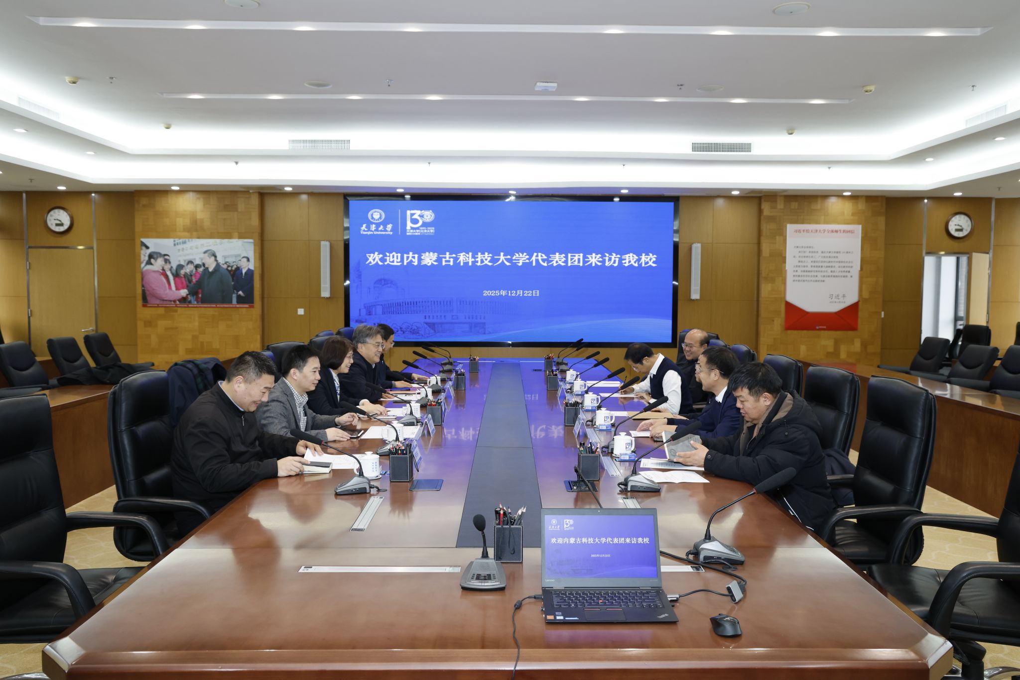12月22日,科技大学党委呼和一行来访我校,校党委杨贤金正在北洋园校区会见宾客。科技大学党委委员、副校长李卫平,校党委常务副雷鸣、党委副韩庆华加入调研。
